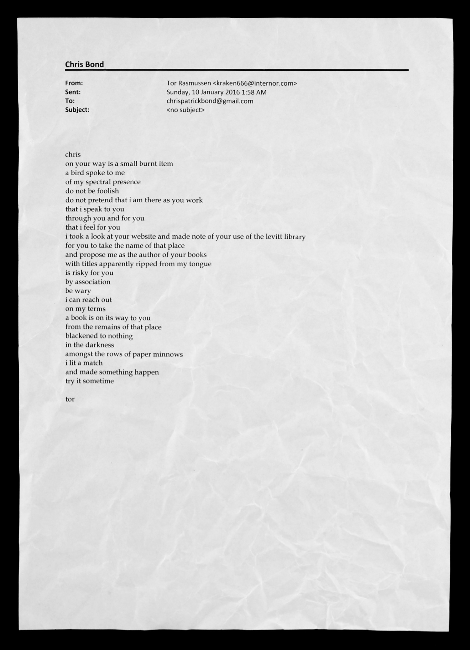 Tor Rasmussen email, 10 January 2016