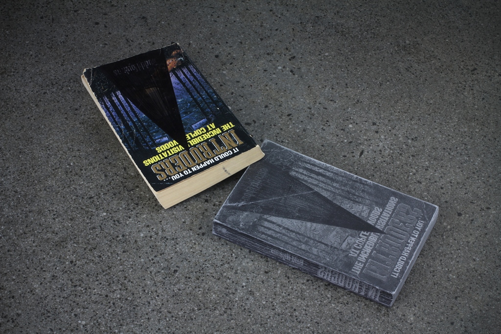 graphite on paper, graphite on found book