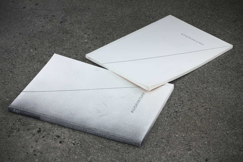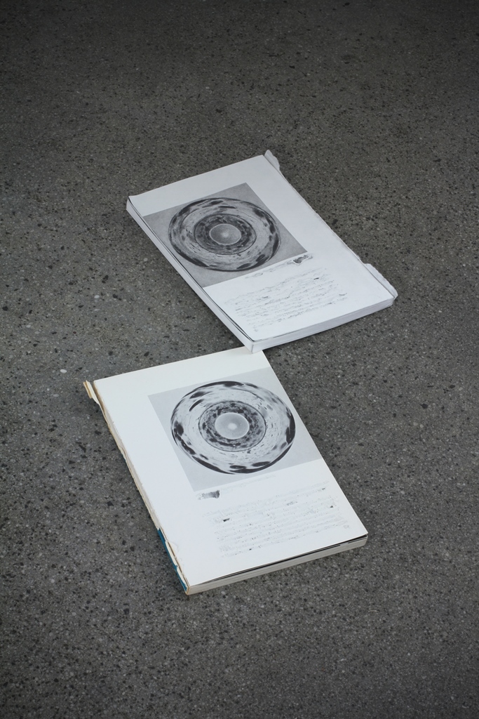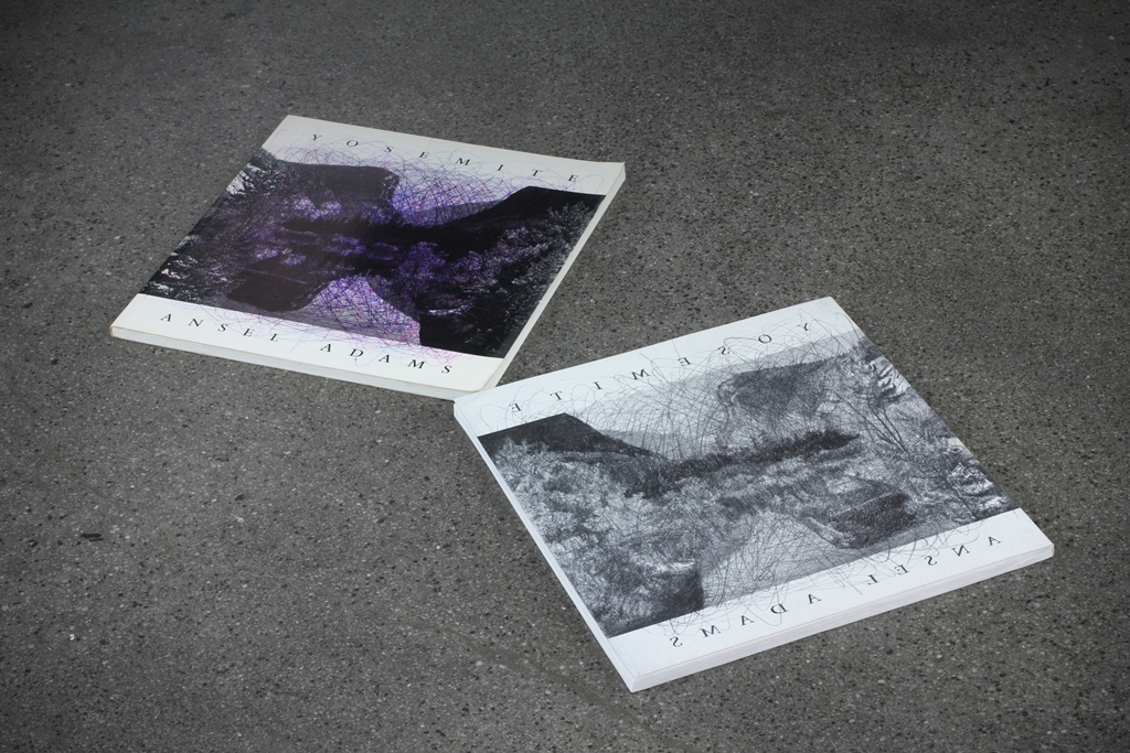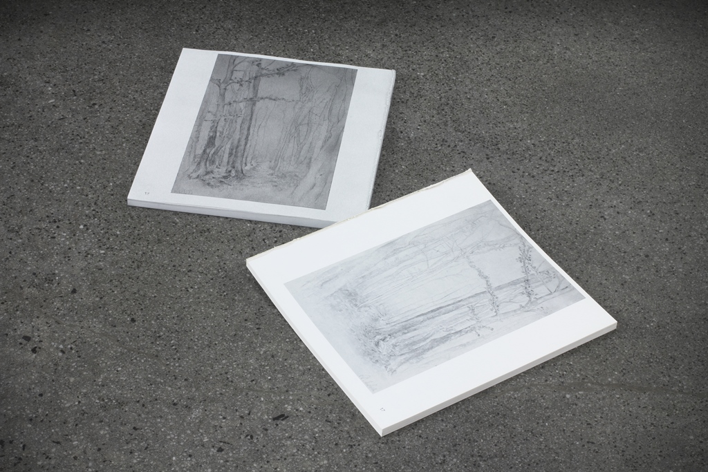 graphite on paper, found book