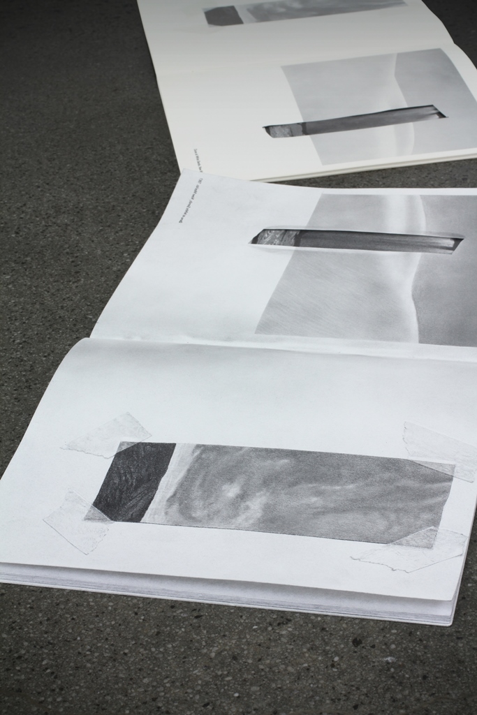 graphite on paper, found book, tape