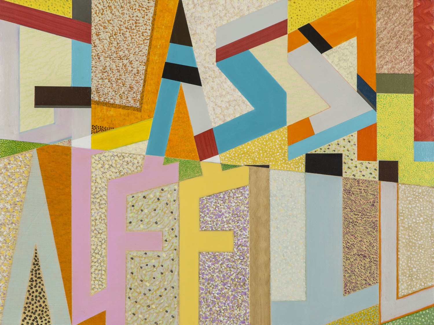 acrylic paint, spray paint, plywood