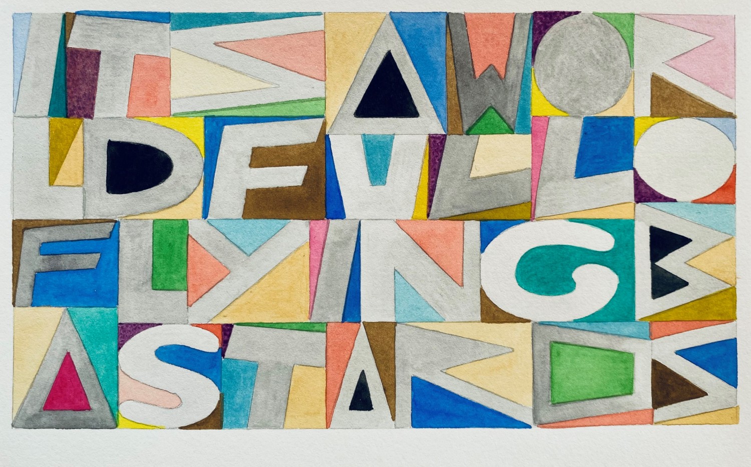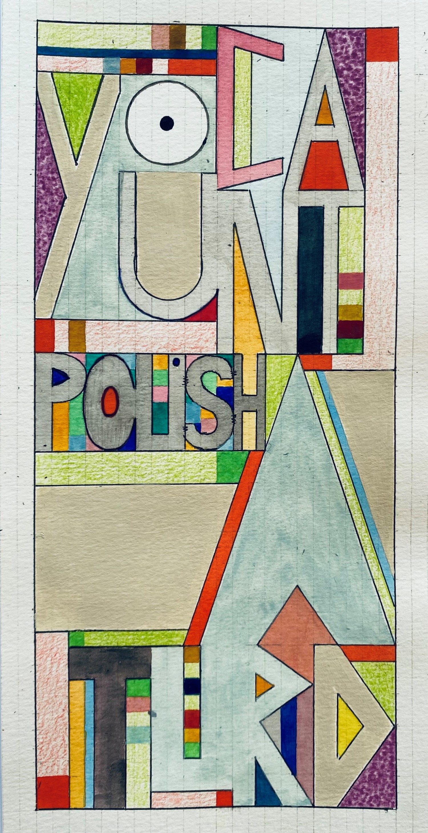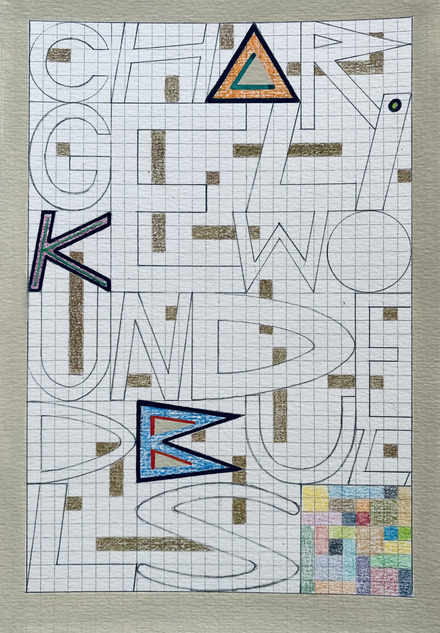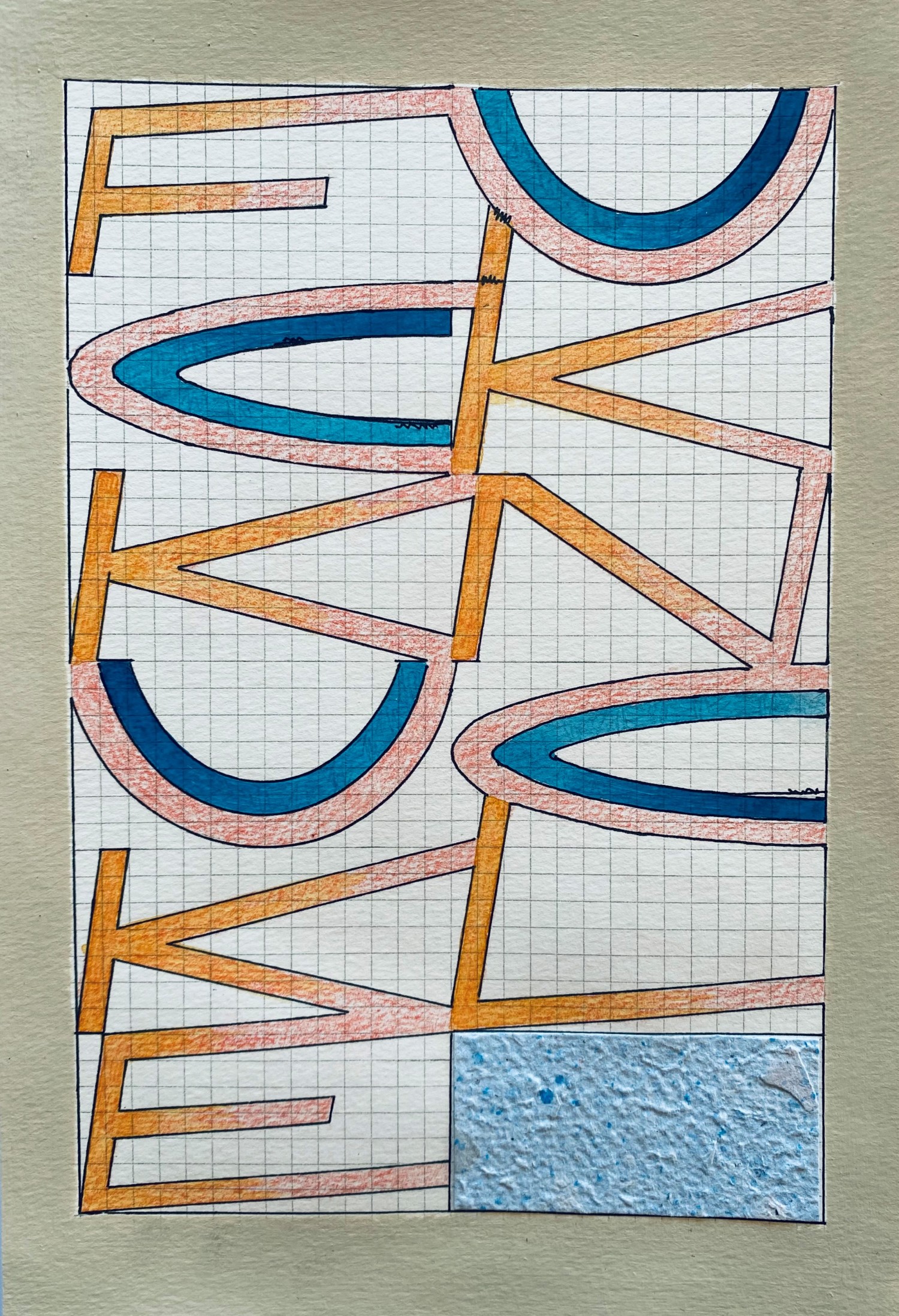 ink, coloured pencil, watercolour, inkjet print, acrylic paint