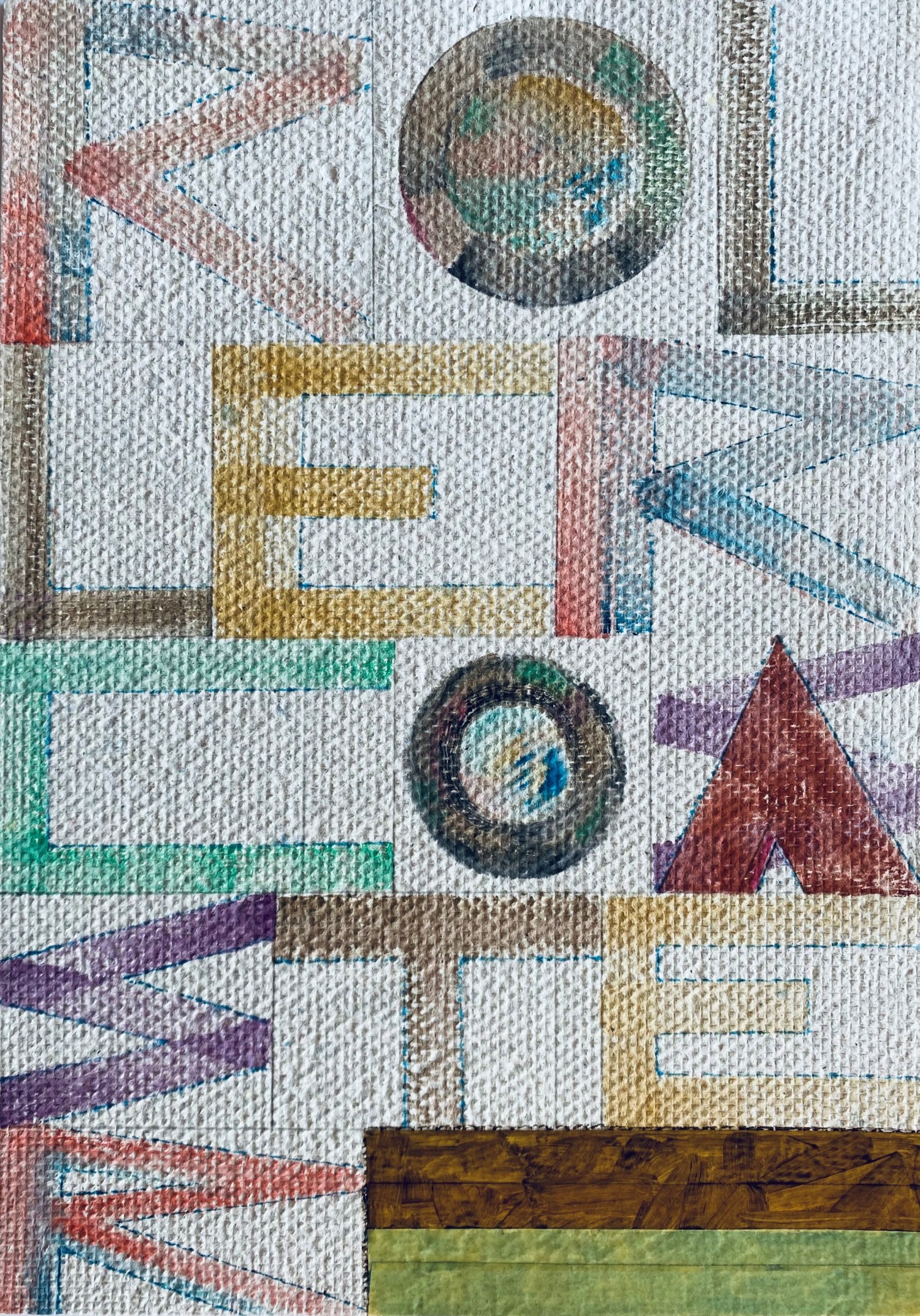 coloured pencil, watercolour, inkjet print, acrylic paint on paper