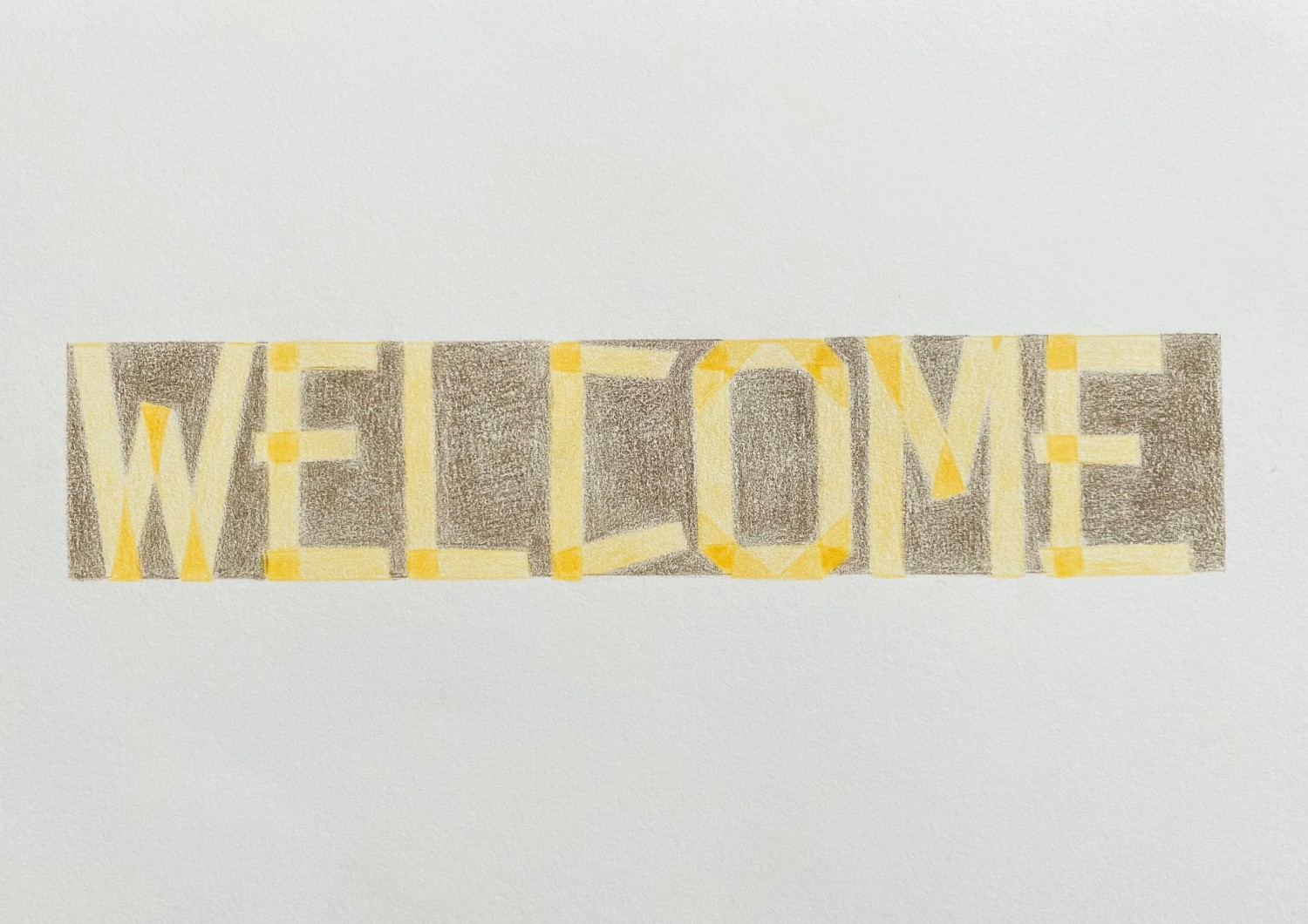 ink, coloured pencil, watercolour, inkjet print, acrylic paint on paper