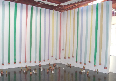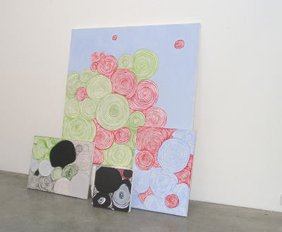 Installation view featuring: Nail Polish paintings