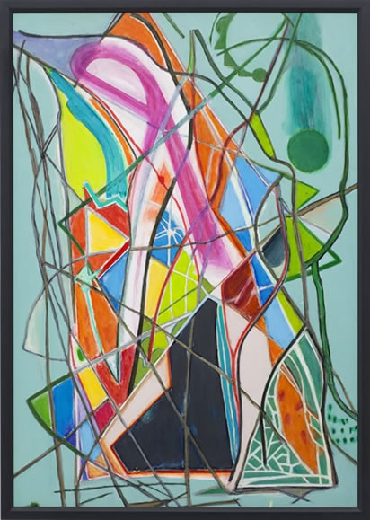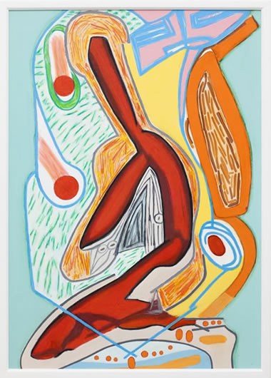 acrylic paint, pencil, crayon & marker pen on canvas on board