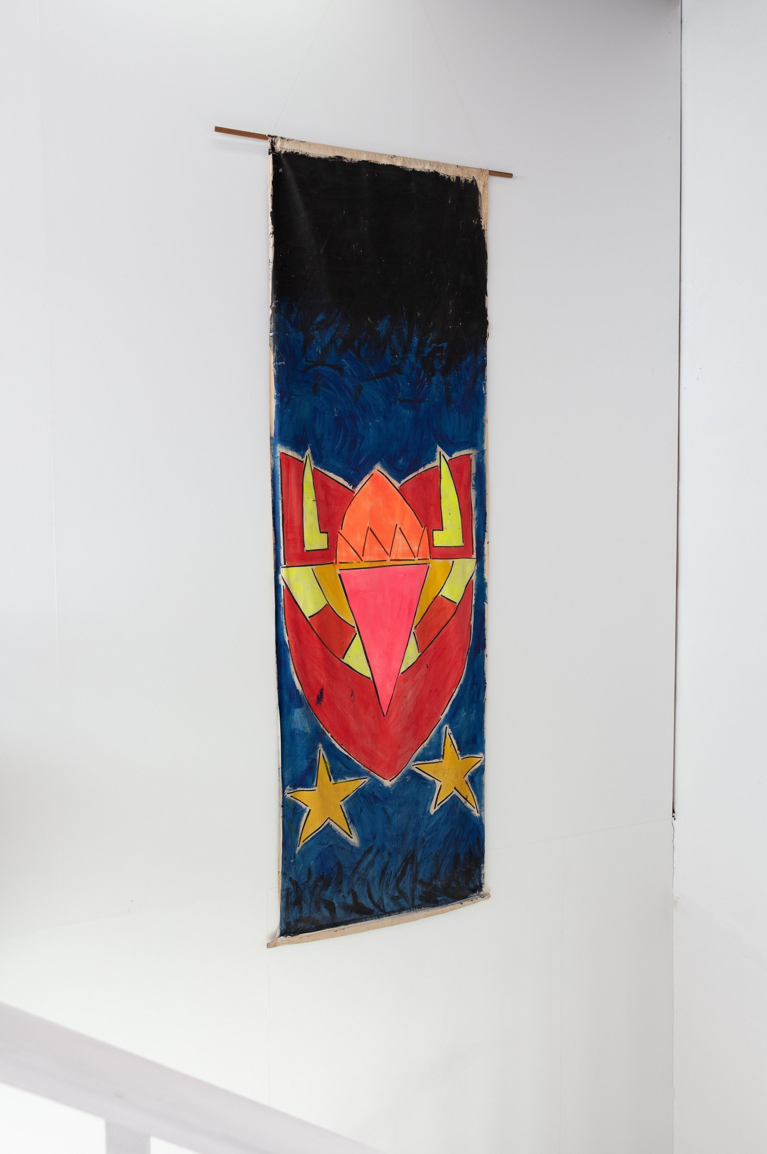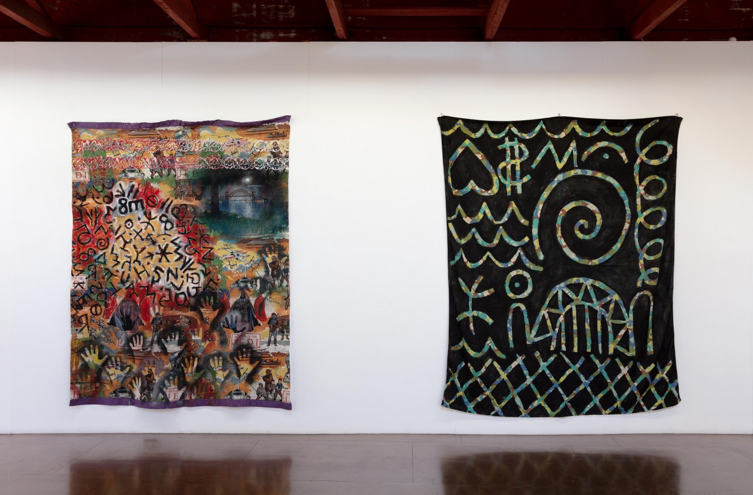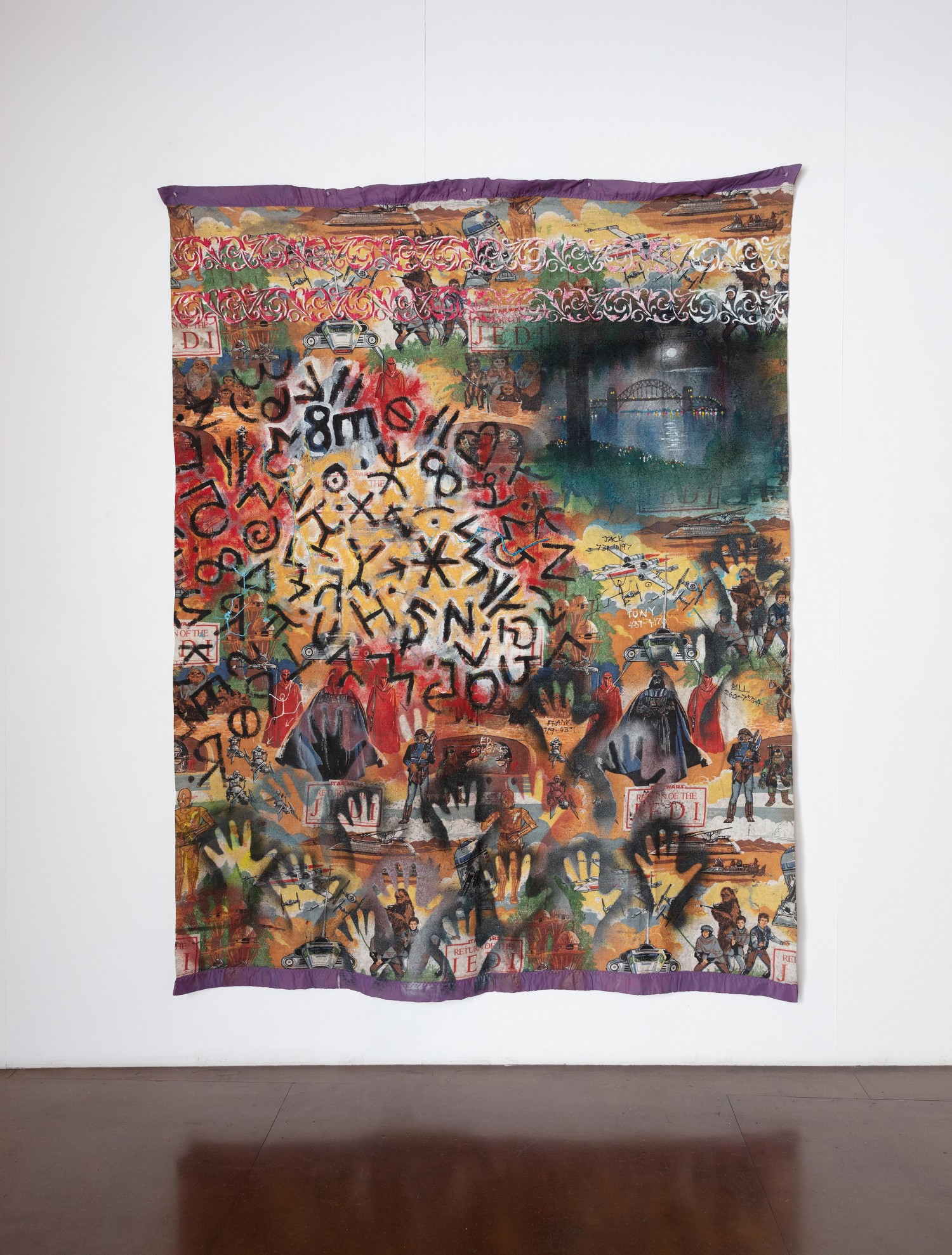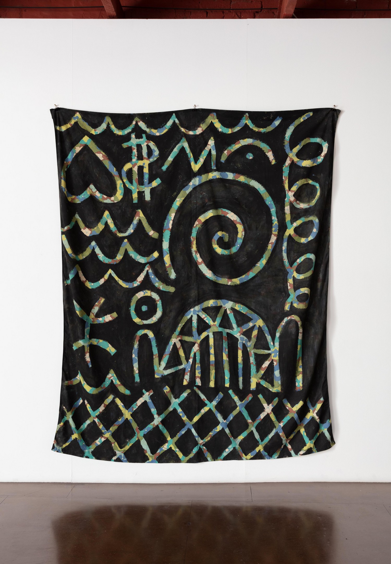 synthetic polymer paint on found cotton bedsheet