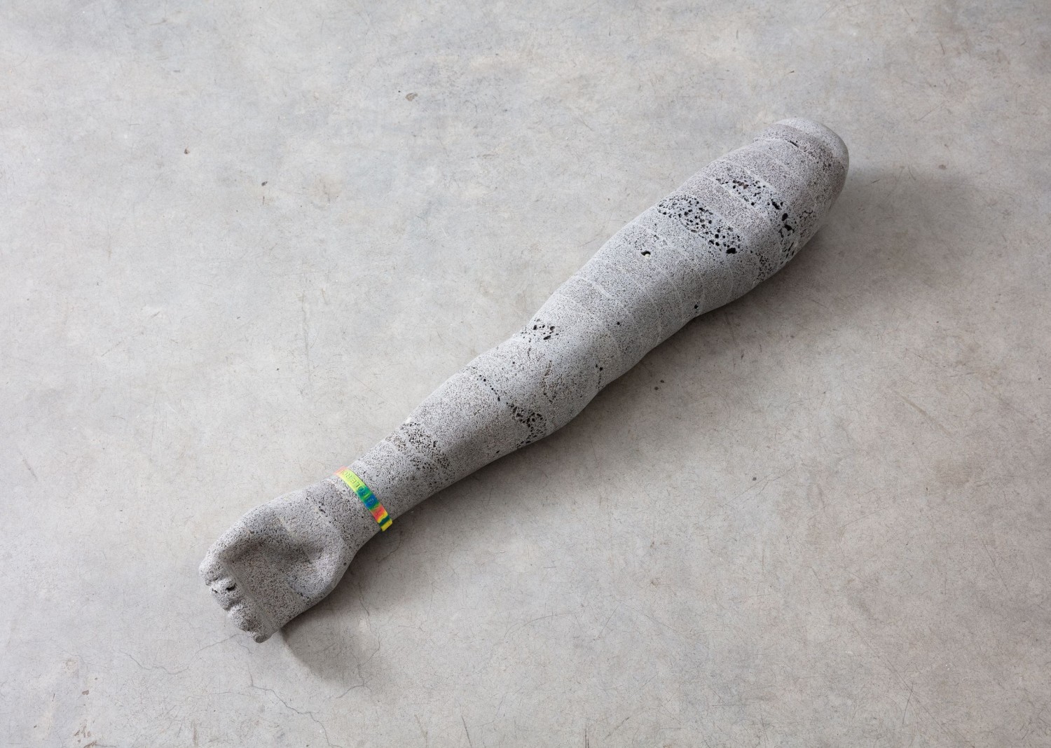 laminated Rouse-Port Fairy bluestone, debossed, marbleized silicone wristband