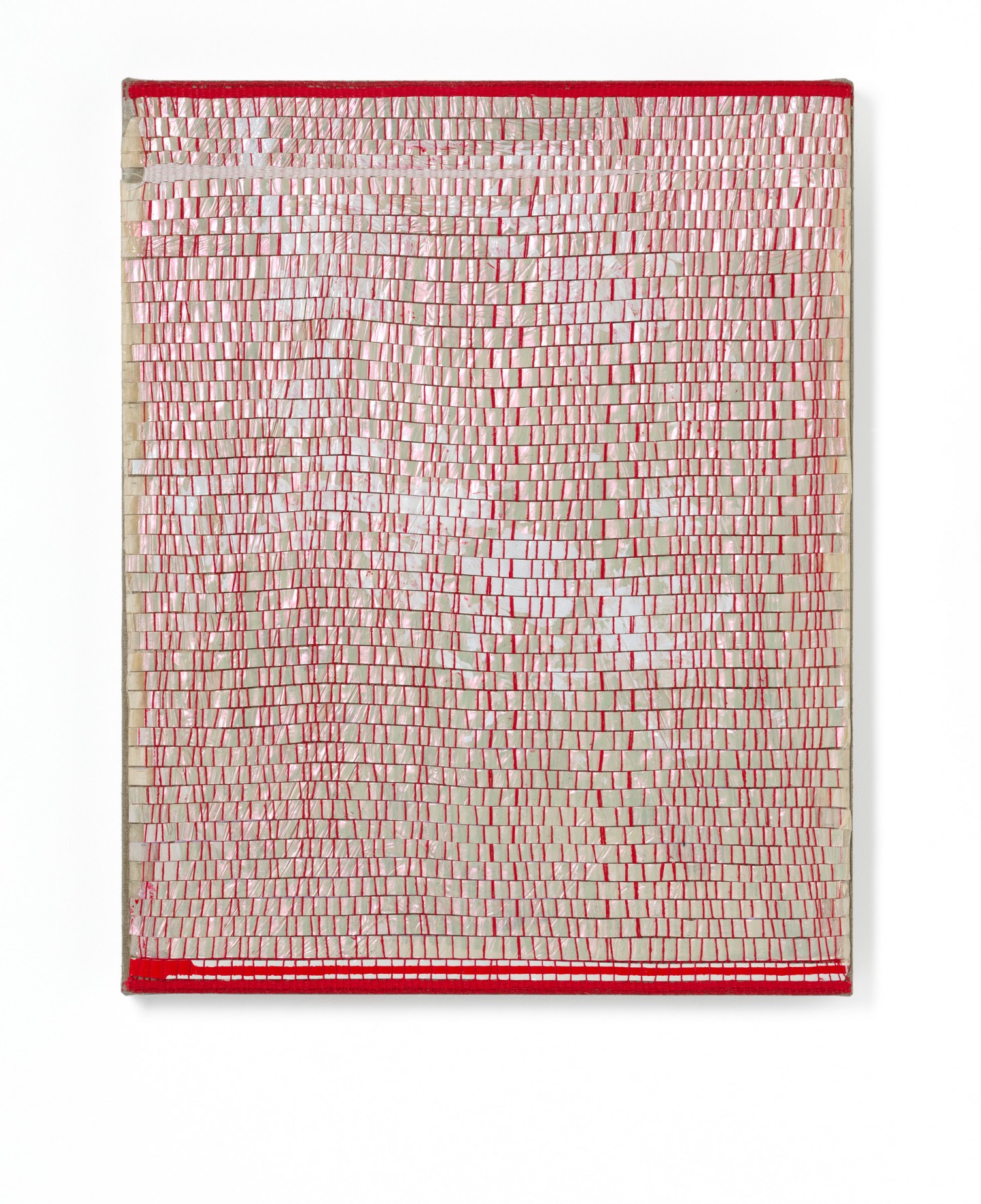 synthetic polymer emulsion, iridescent pigment, Japanese kozo natural paper,linen and cotton thread on linen