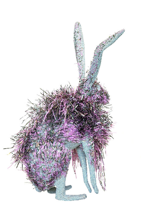 Hand crocheted metallic (lame) thread and plastic over high density foam