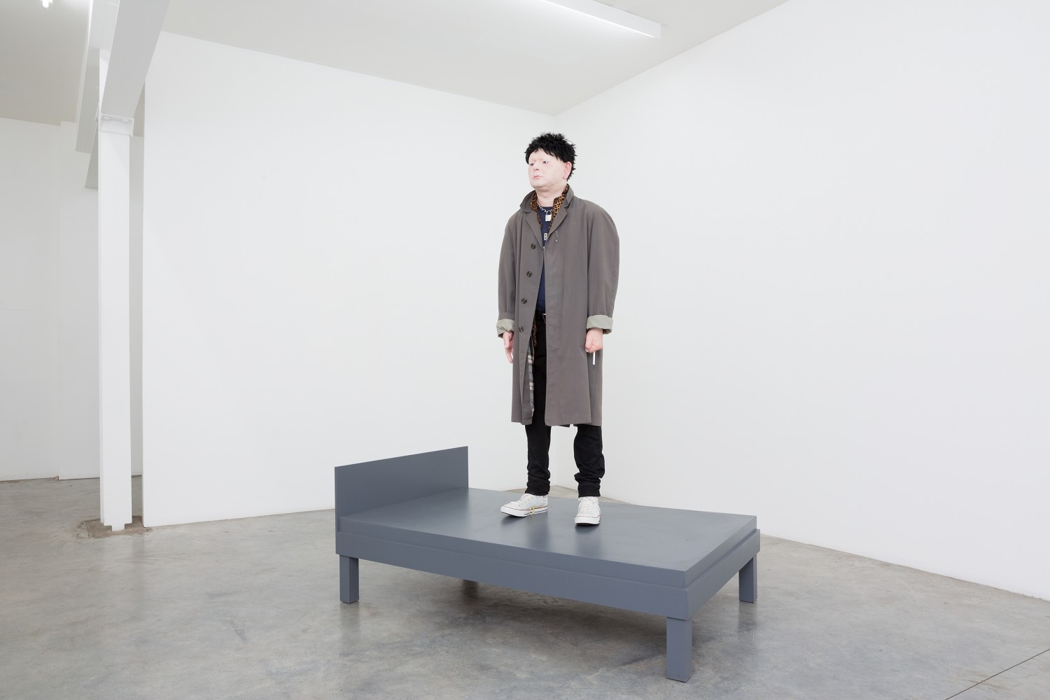 painted mdf, painted polyurethane and fibreglass on polystyrene, wig, clothing