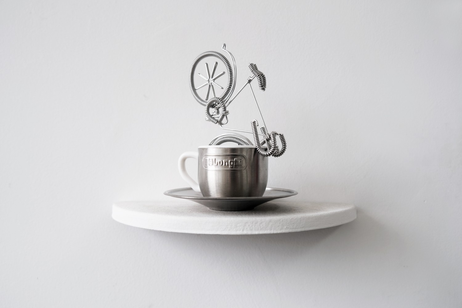 double espresso two sugars, cupped under a tender nose, stirred with the front wheel of a street vendor's bicycle 15 x 17 x 15cm
