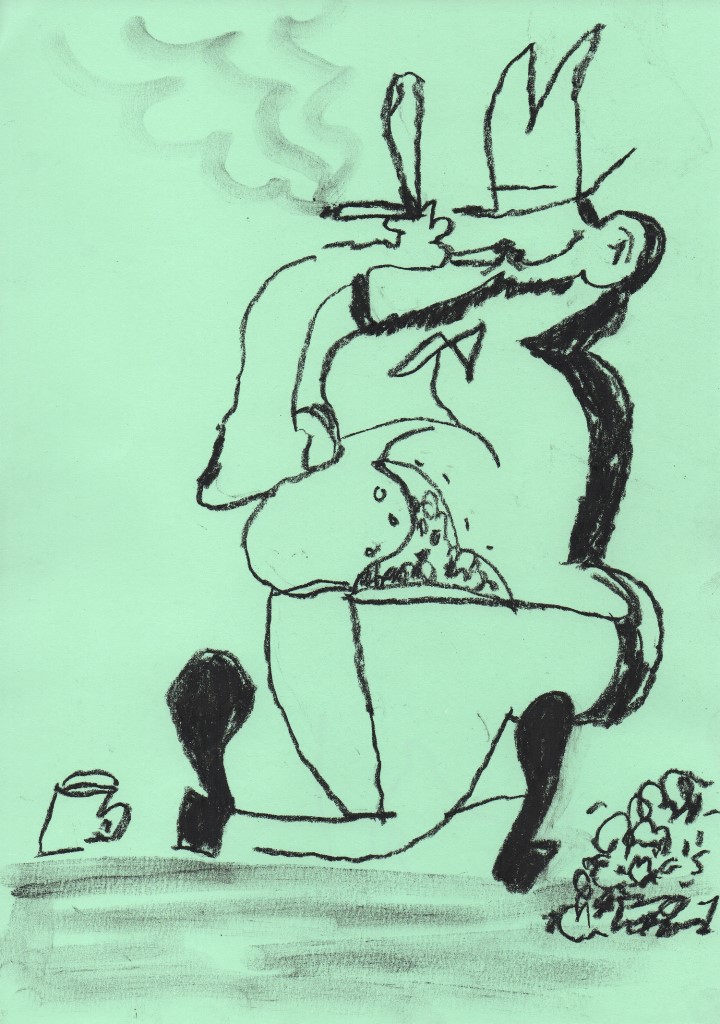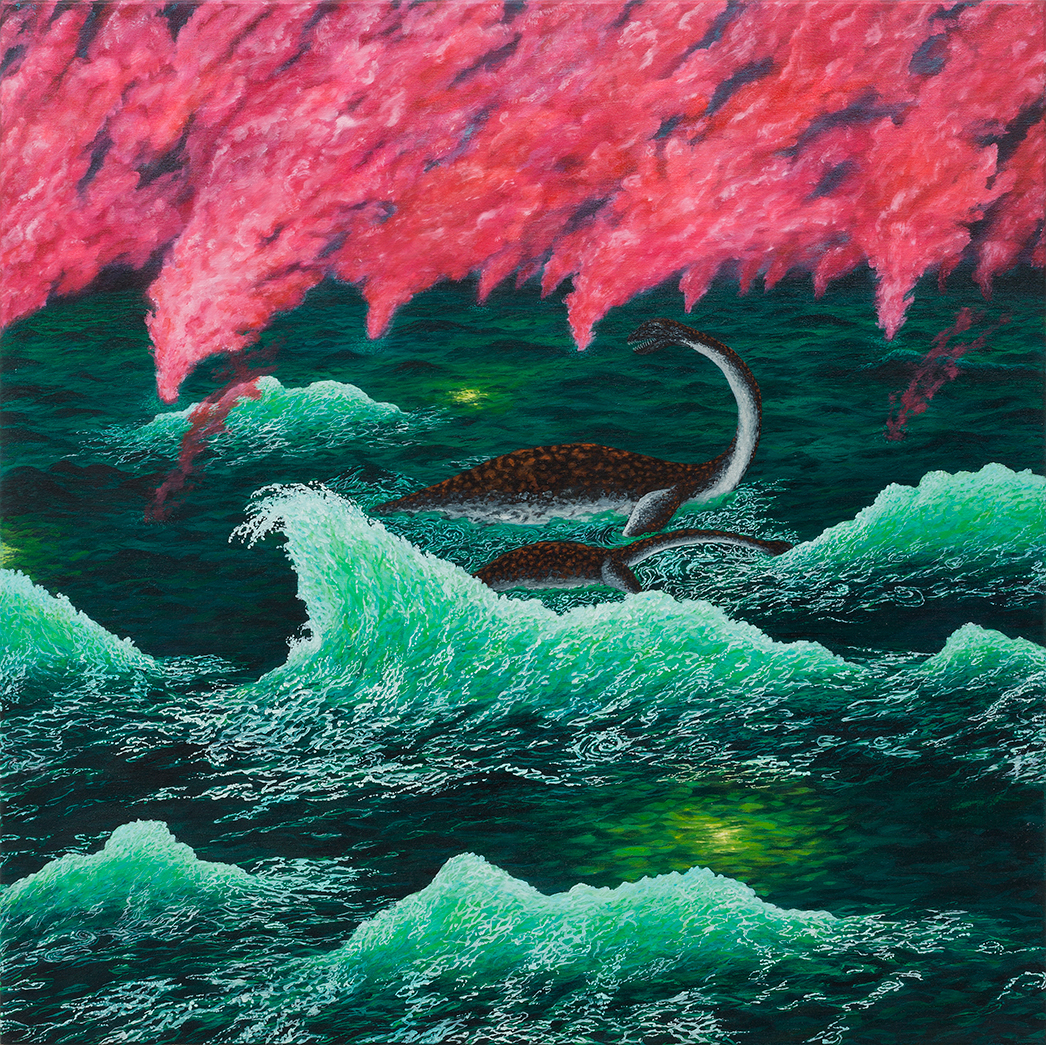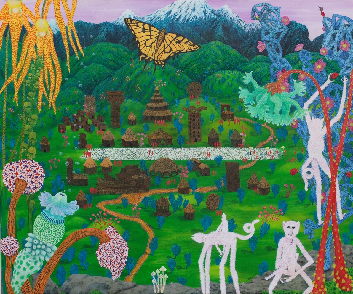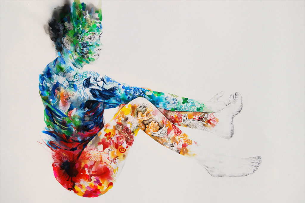 watercolour, ink, gouache, acrylic, airbrush and oil pastel on paper