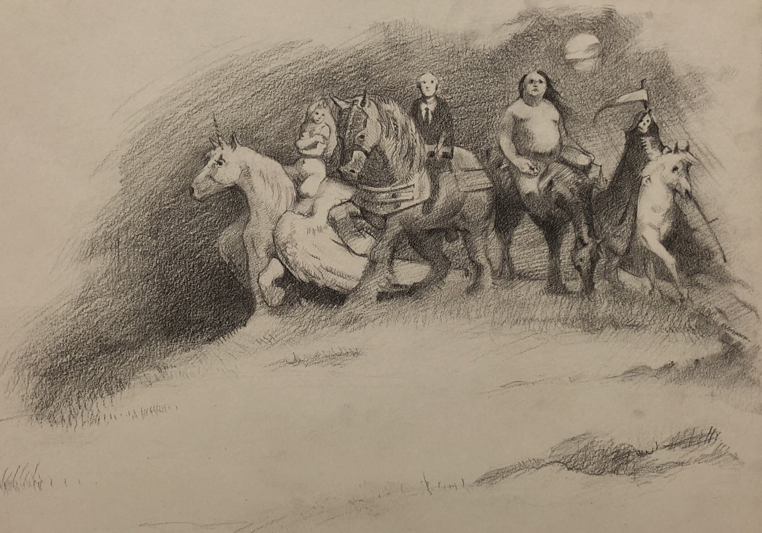 oil paint, oil pastel, colour pencil, watercolour, gouache, acrylic paint and charcoal pencil on paper