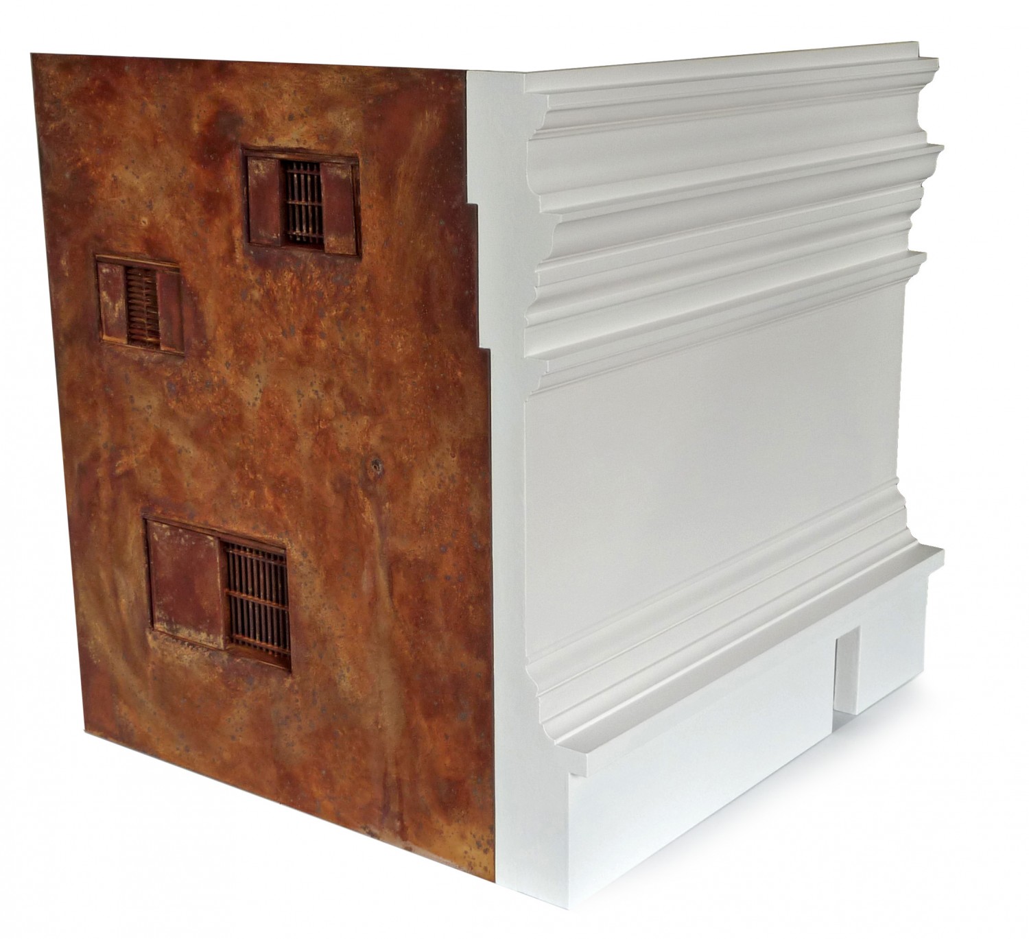 wood, iron oxide, synthetic polymer paint, card
