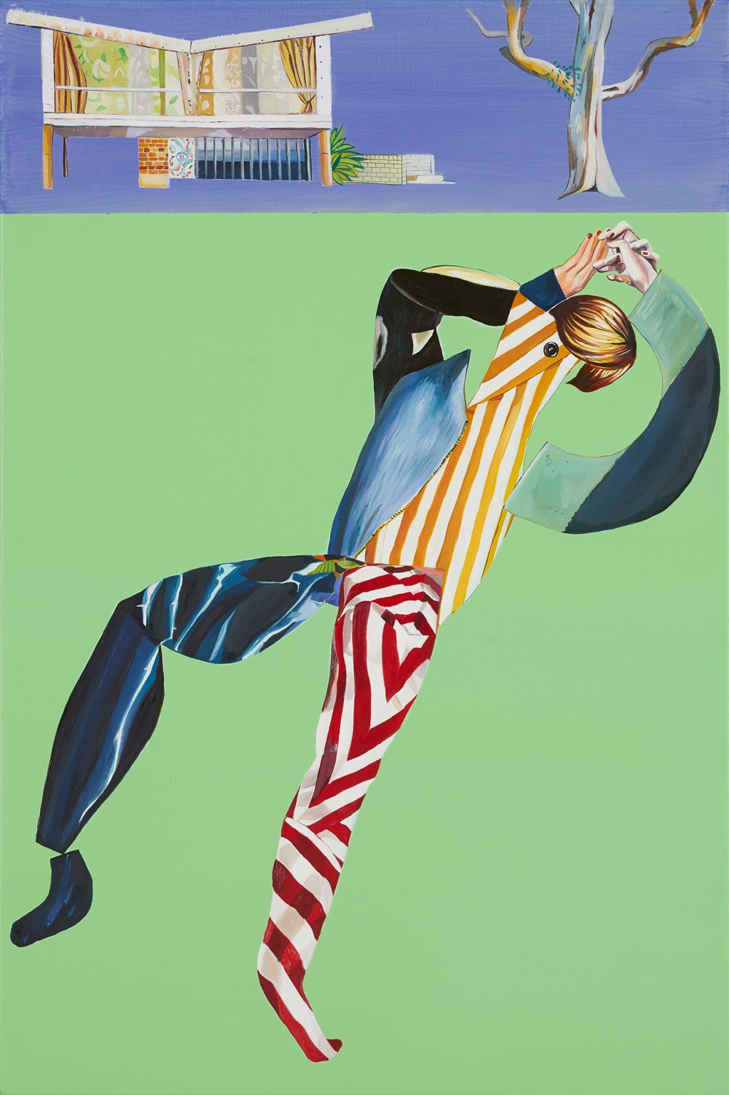 Reclining man with house and gum tree
