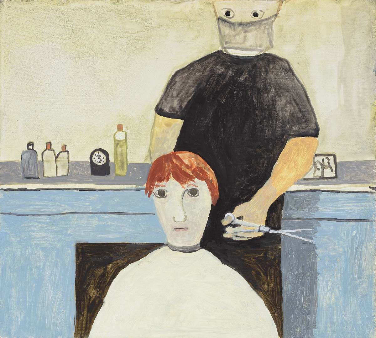 Boy with red hair getting hair cut