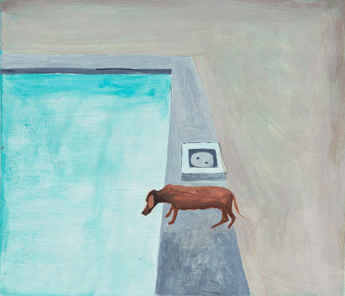 Dog on edge of pool