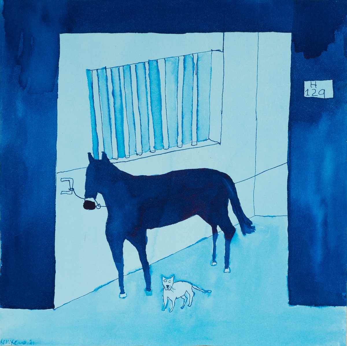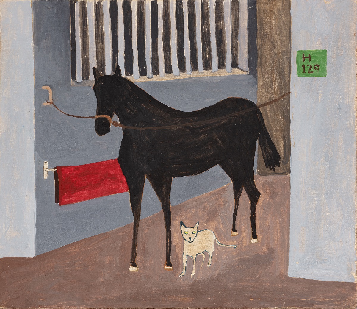 Horse, cat in stall