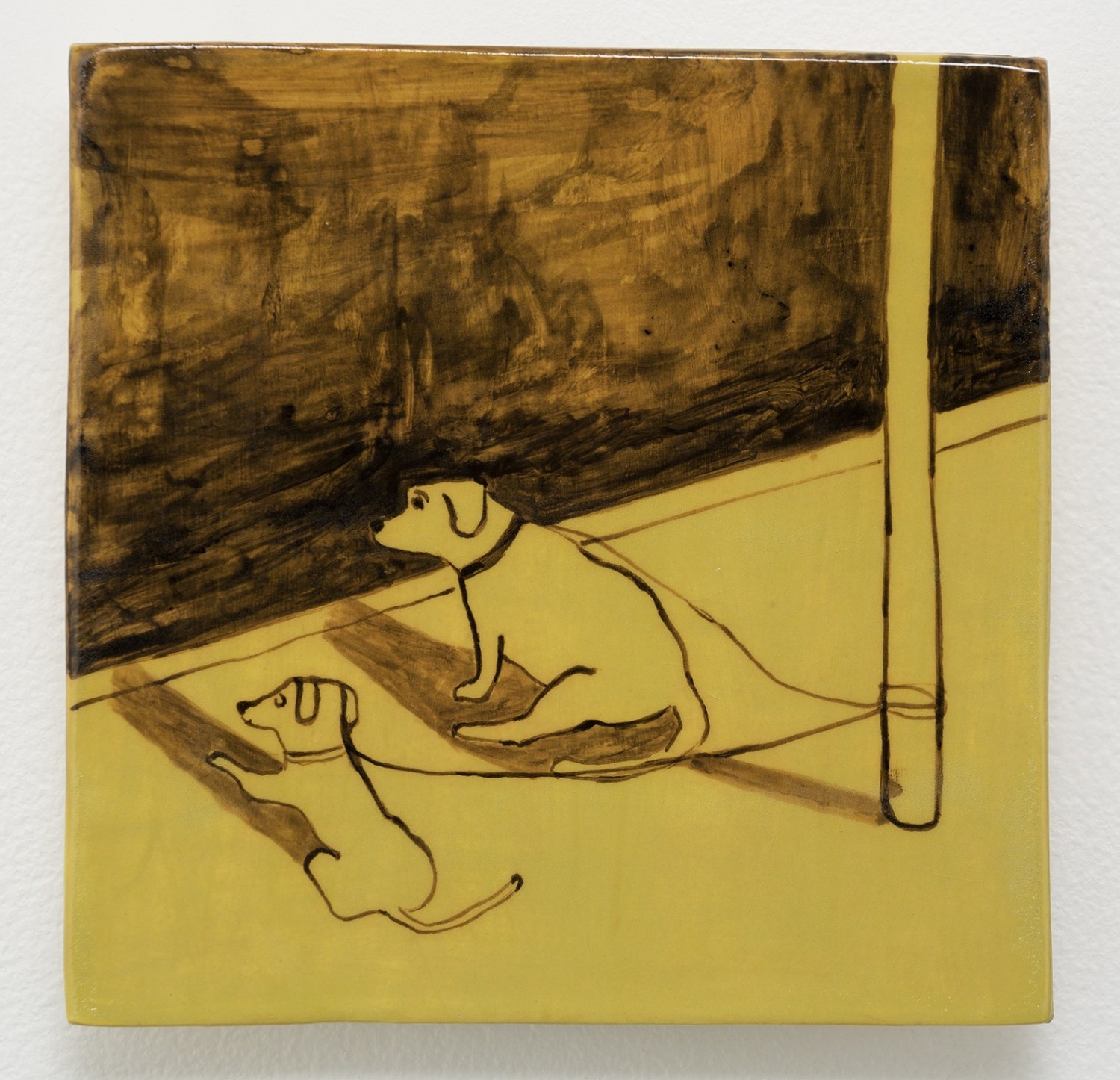 Tied up dogs Rose Bay L, Melman and Rosie (our dogs)