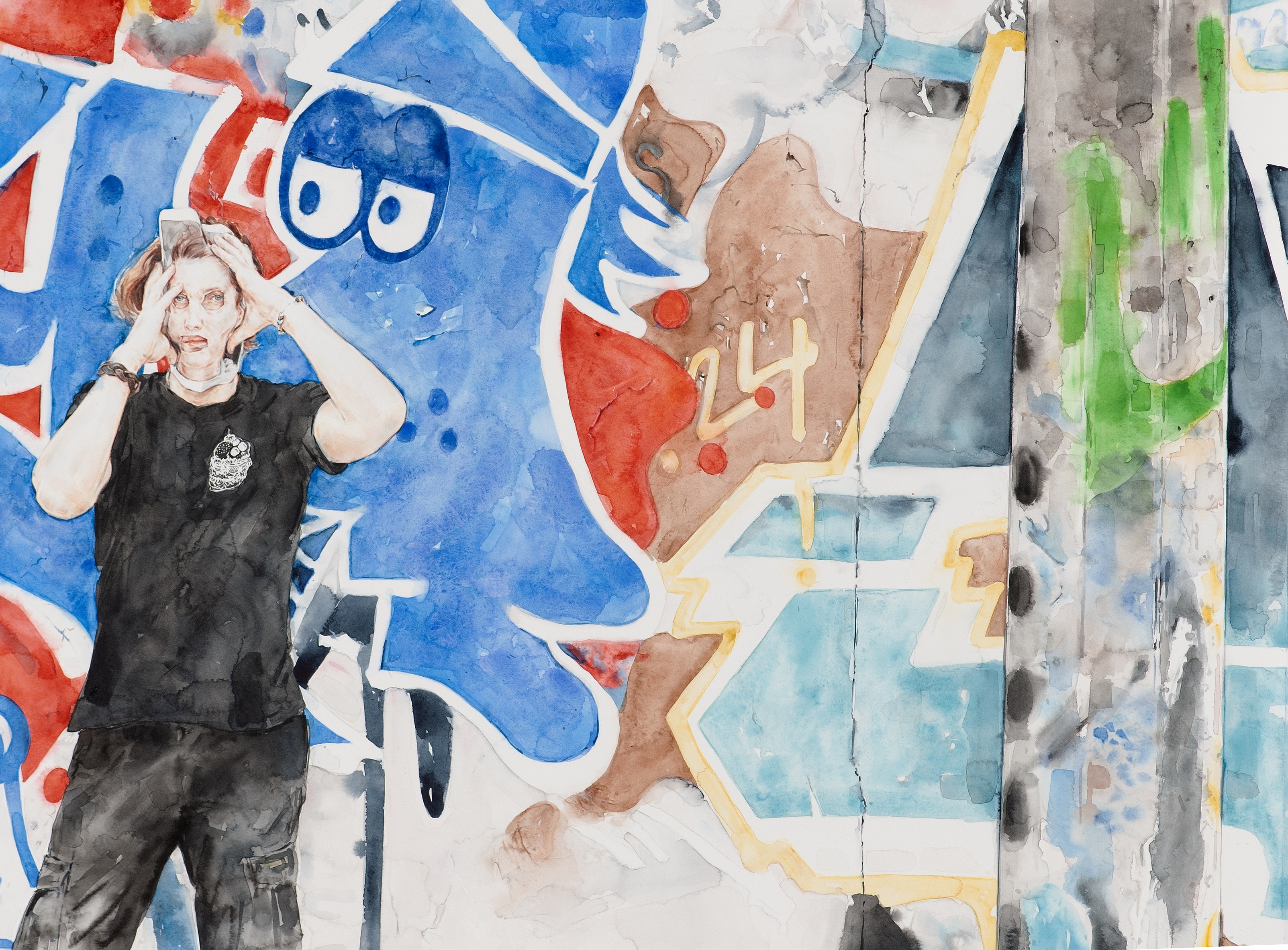 Jennifer Mills, Berlin Wall 2025, watercolour on paper, 54 x 73 cm (paper size)