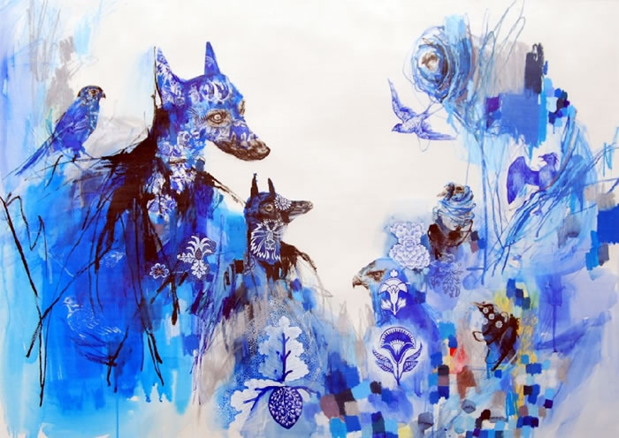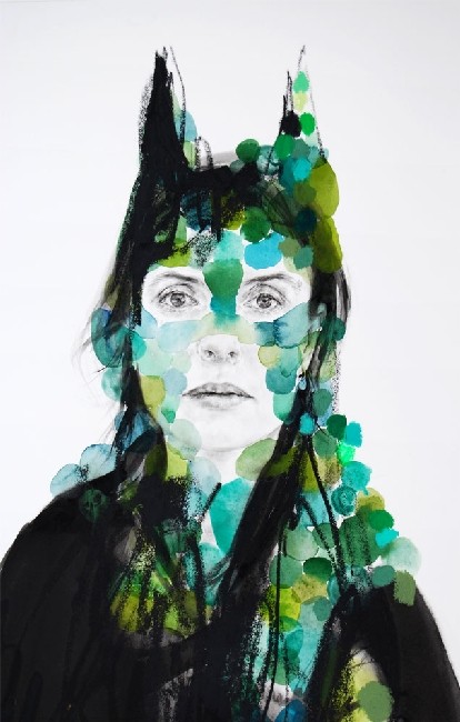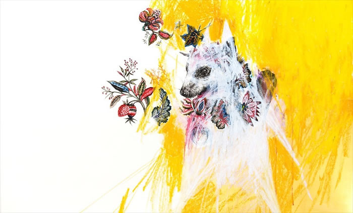 watercolor, ink and oil pastel on paper