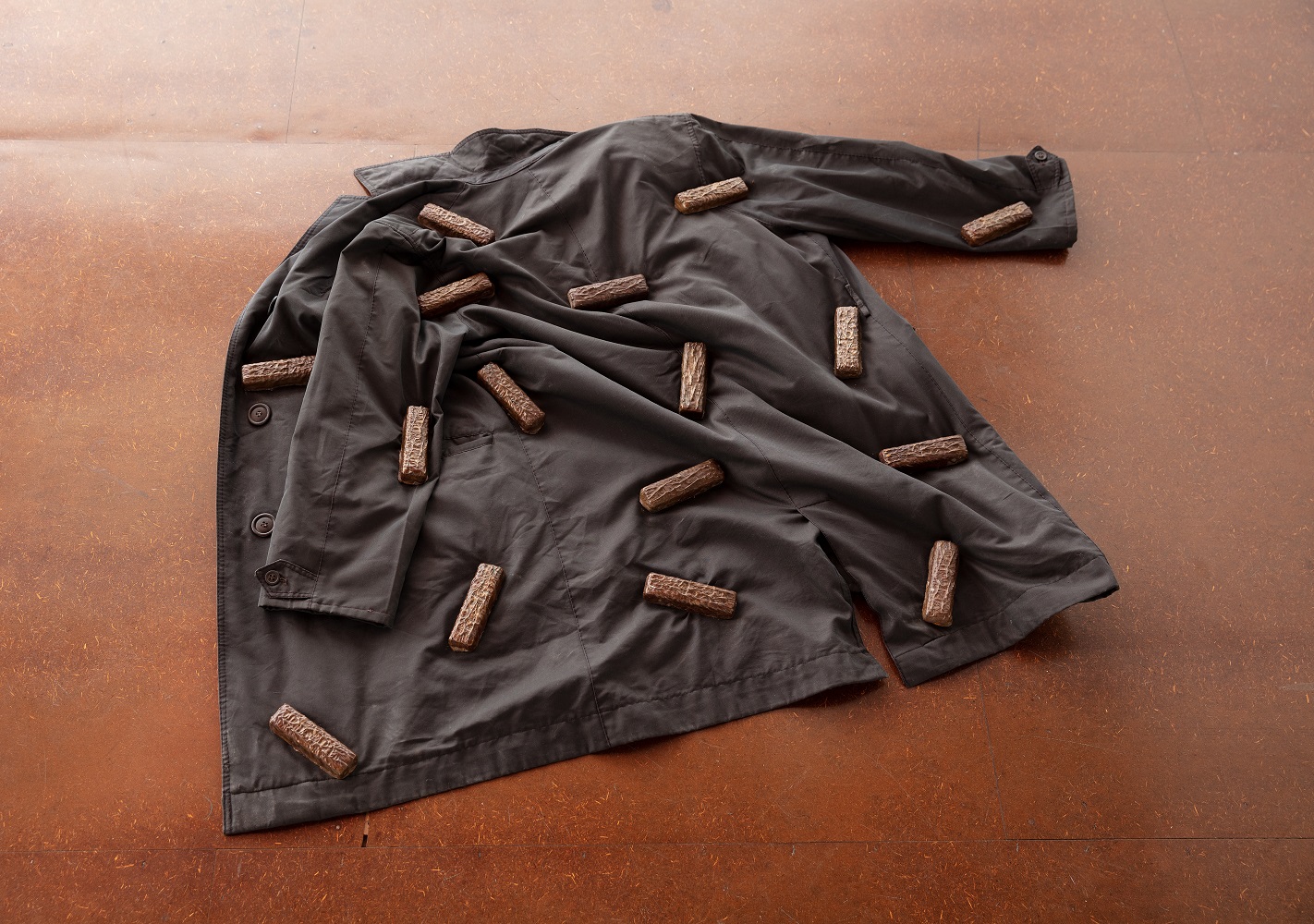 black cotton jacket, bronze casting