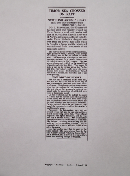 Expednews Timor Sea Crossed on Raft: Scottish Artist's Feat
