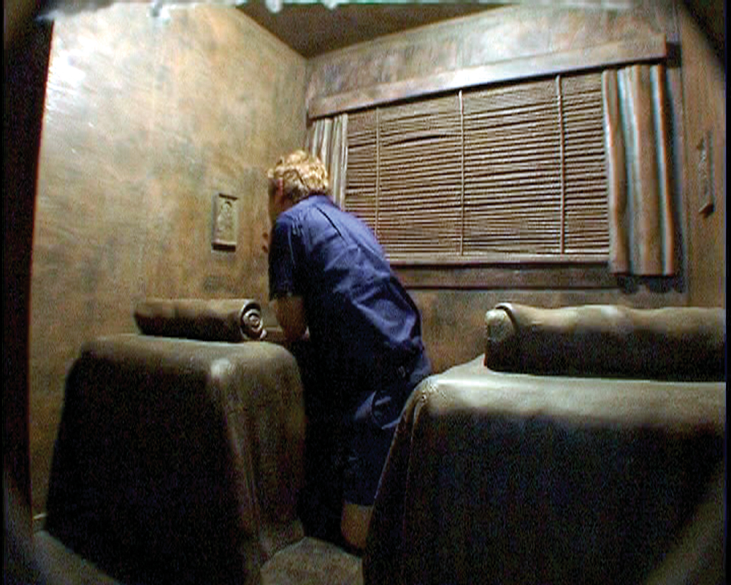 (detail) wood, polyurethane, glue, resin, Texta, canvas, clamps, monitor, transmitter & DVD