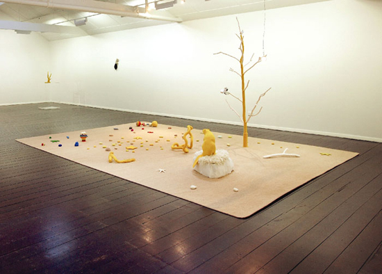 hand crocheted lambswool over fallen grey box tree root fragment and marine plywood.