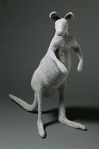 H hand crocheted lambswool over chromed abs plastic ('Tangle' designed by Richard X. Zawitz 1981).