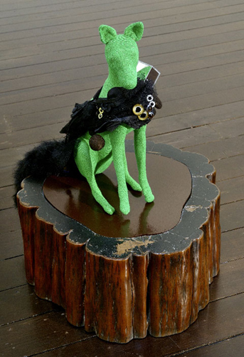 H hand crocheted lambs wool over high density foam. Hand painted glass (various pieces of glass animal taxidermy eyes), felt, nylon and cotton thread. Customised section of a Comme des Garcons shirt panel, Autumn-Winter collection 2004-2005. Mirrored pers