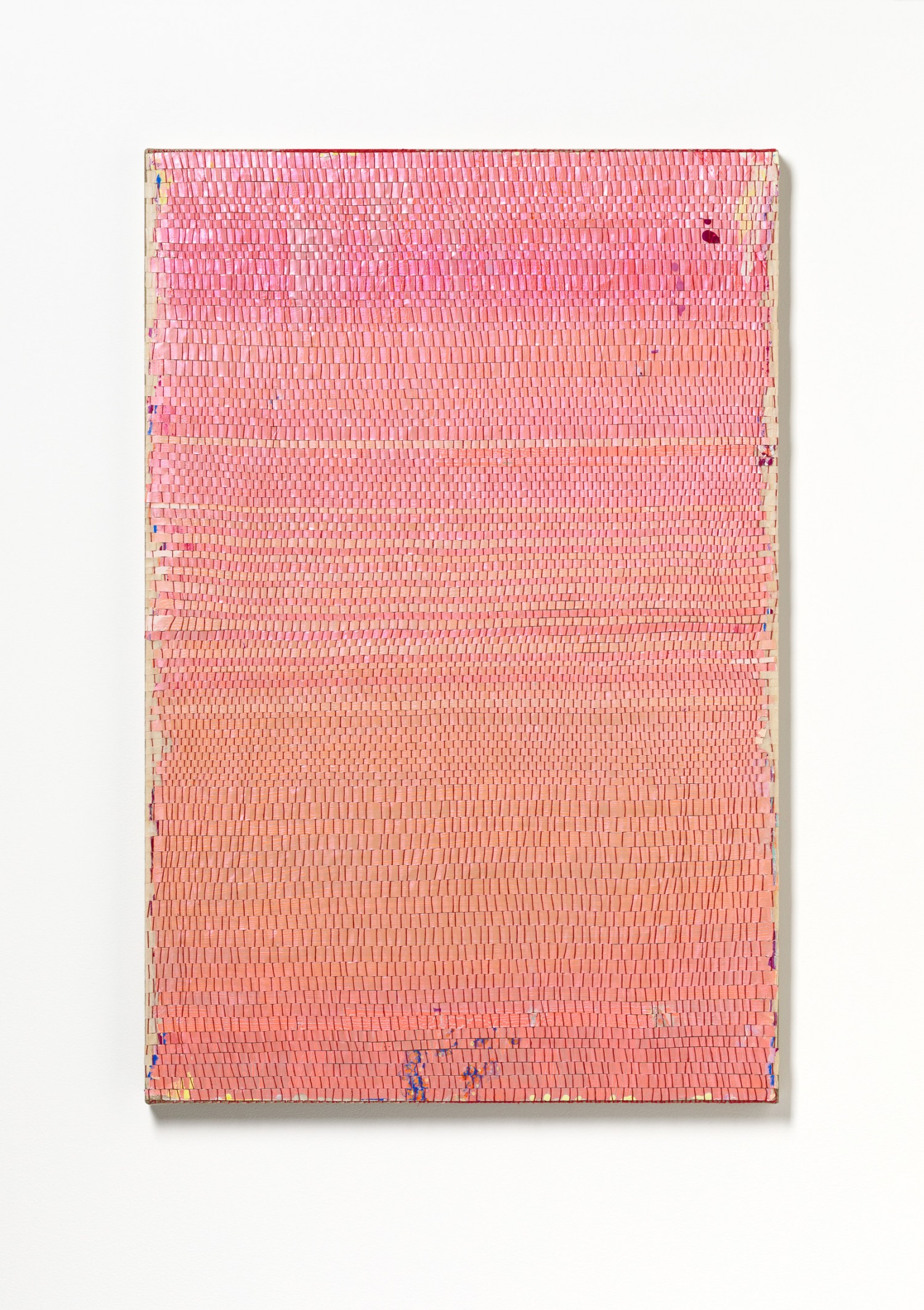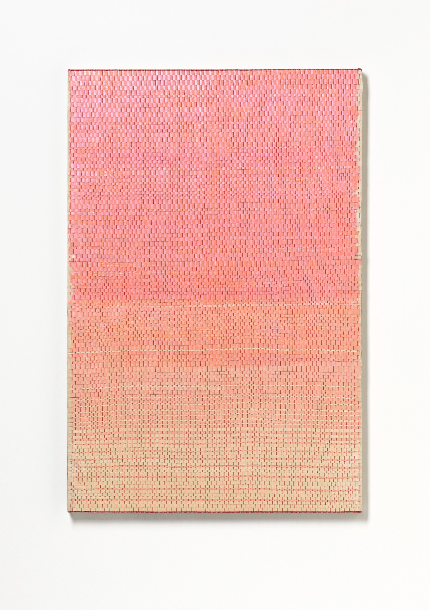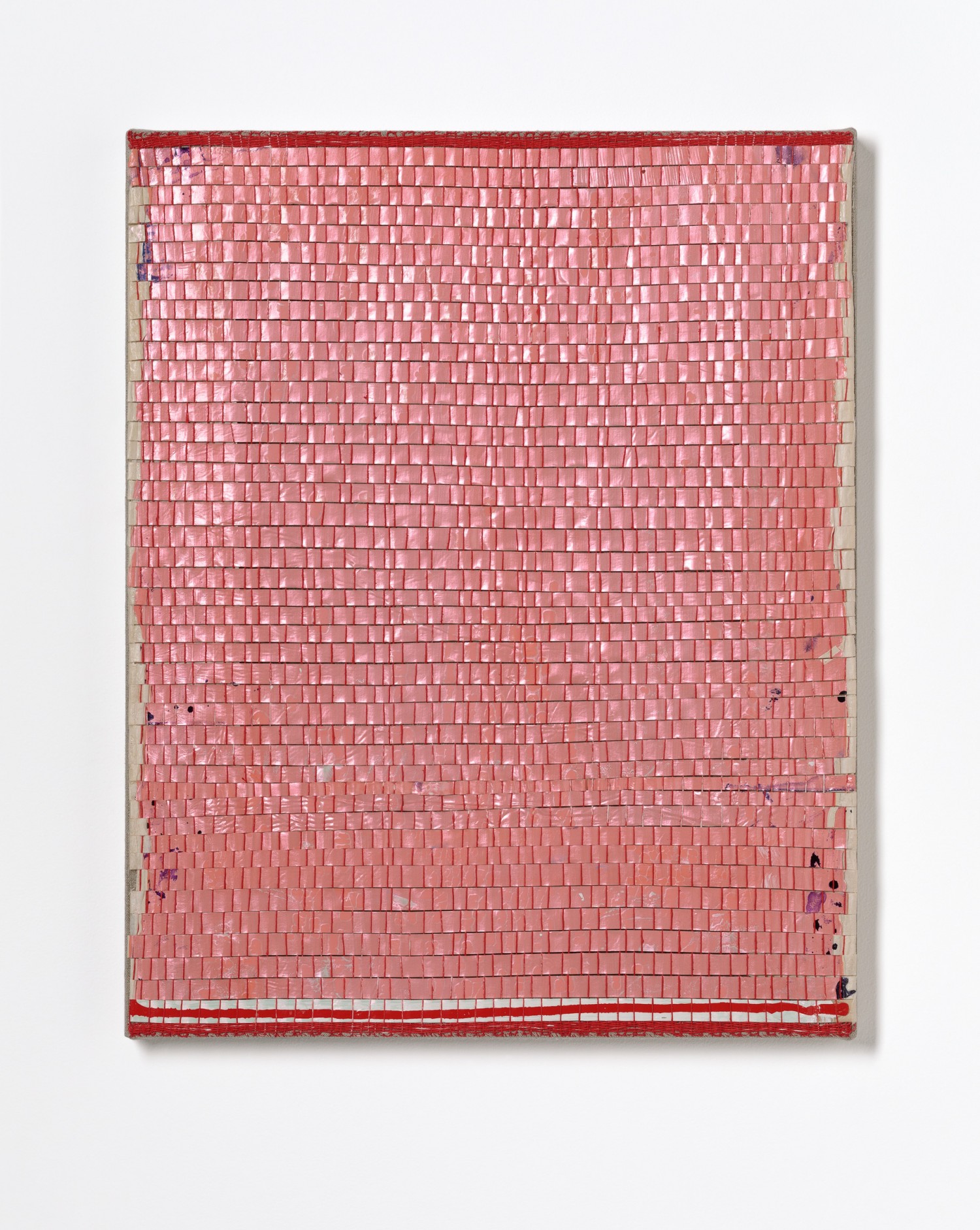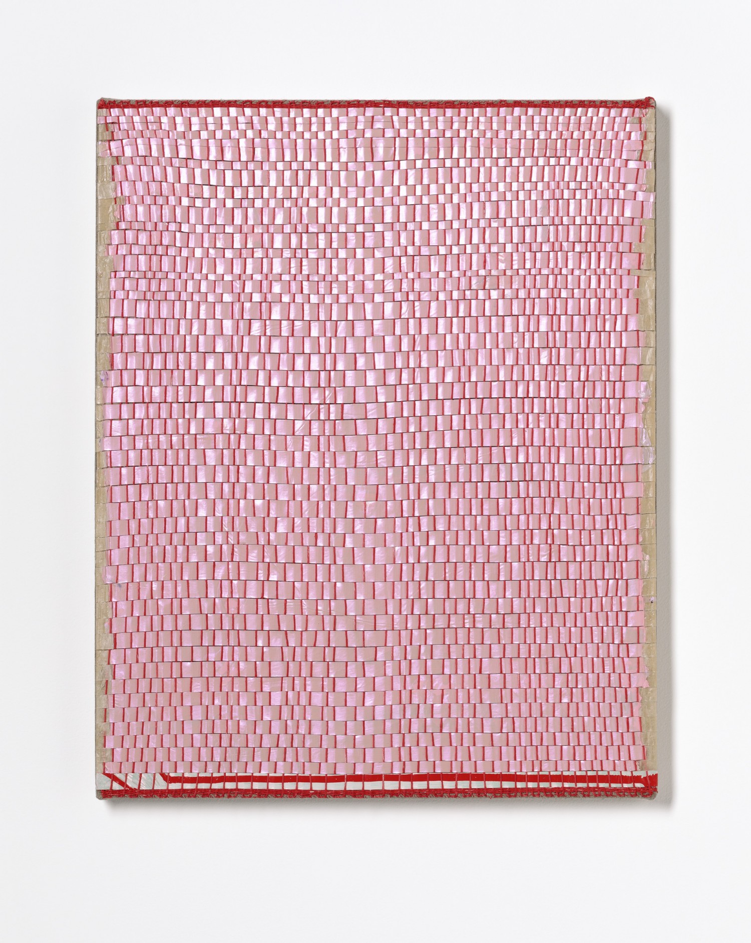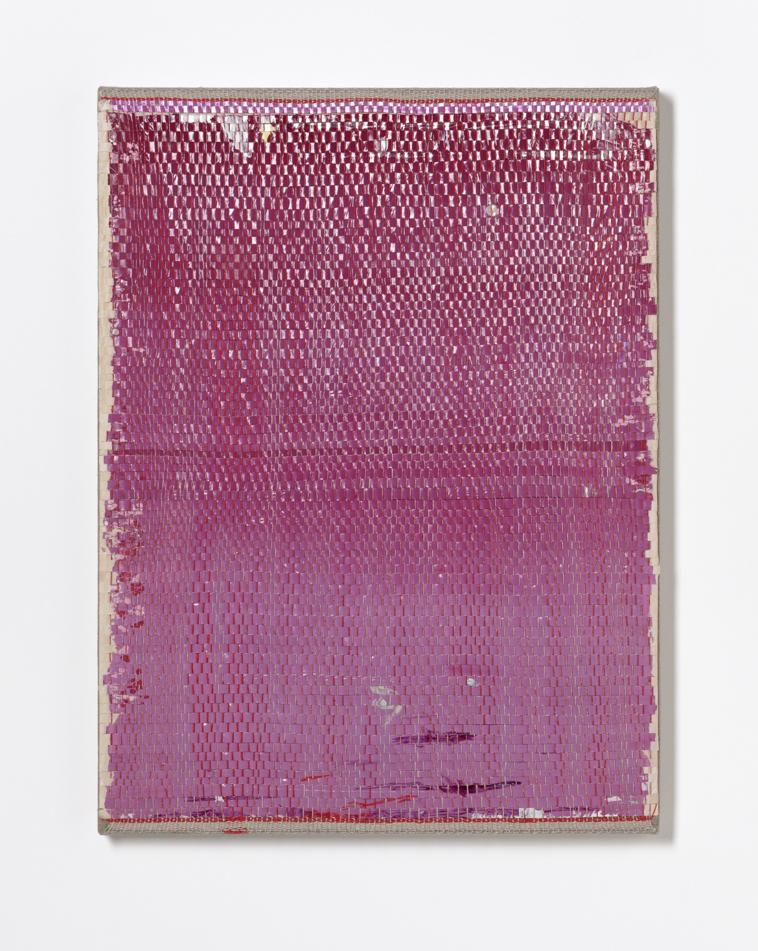 synthetic polymer emulsion, iridescent pigment, micaceous iron oxide, Japanese kozo natural paper, linen and cotton thread on wooden panel