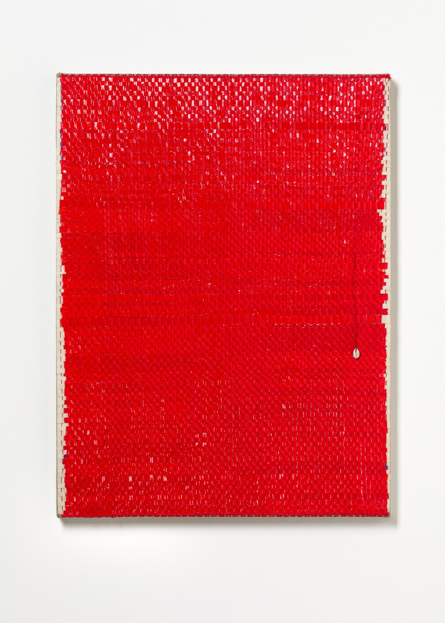 synthetic polymer emulsion, iridescent pigment, Japanese kozo natural paper, cowrie shell, linen and cotton thread on linen