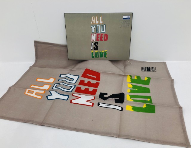 Jon Campbell All You Need is Love SOLD OUT limited edition linen tea towel produced by Third Drawer Down 2015 Edition of 1000, packed in a cardboard envelope, 70 x 50 cm A$0.00 LIMITED STOCK PLEASE ENQUIRE Shipping: FREE within Australia Enquire about international rates